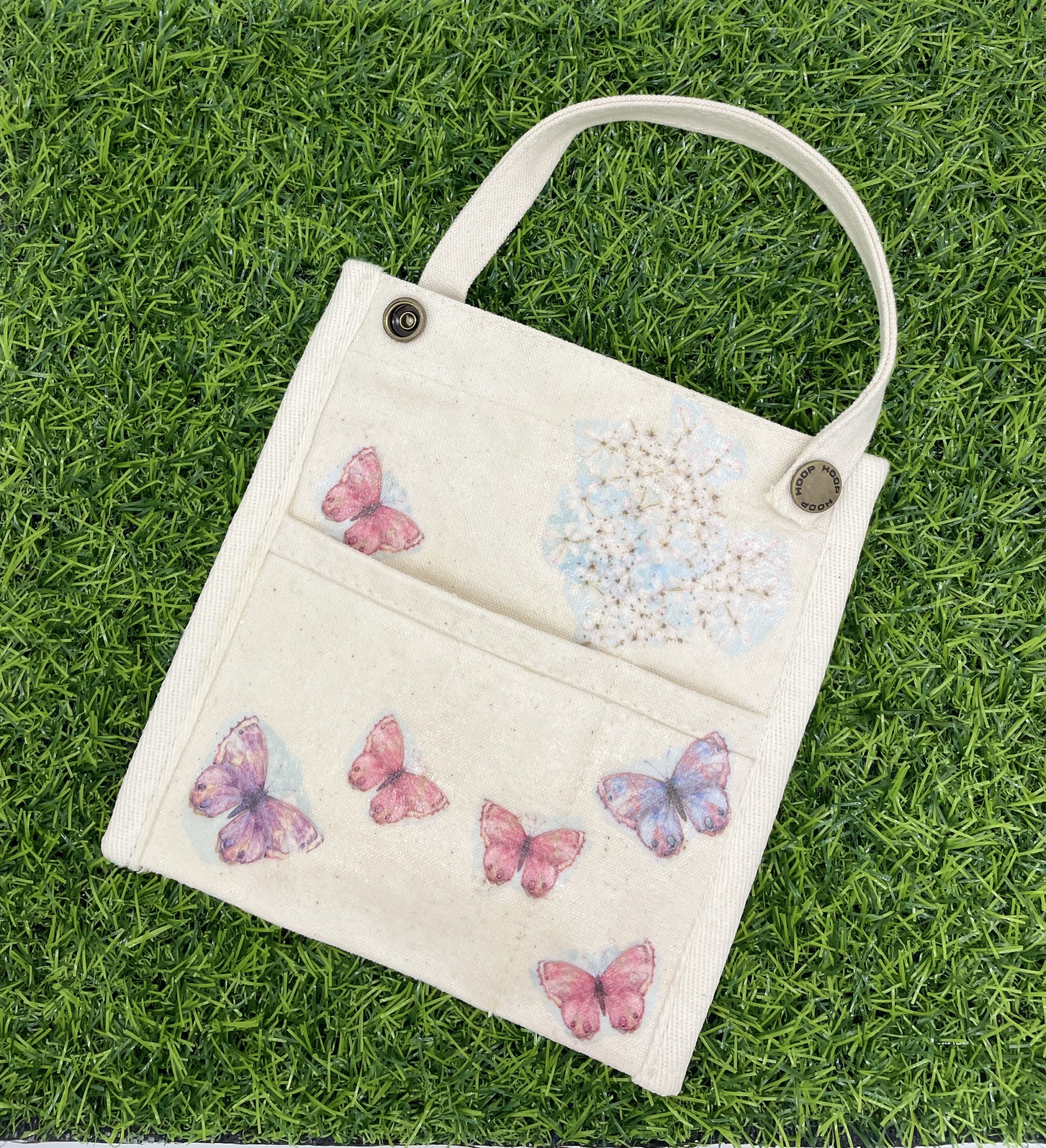 A simple inner bag for a better arrangement and storage of things. A bag with butterflies design.